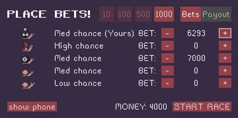 Eatz - Buy items to give to a random snail during the race to affect the outcome