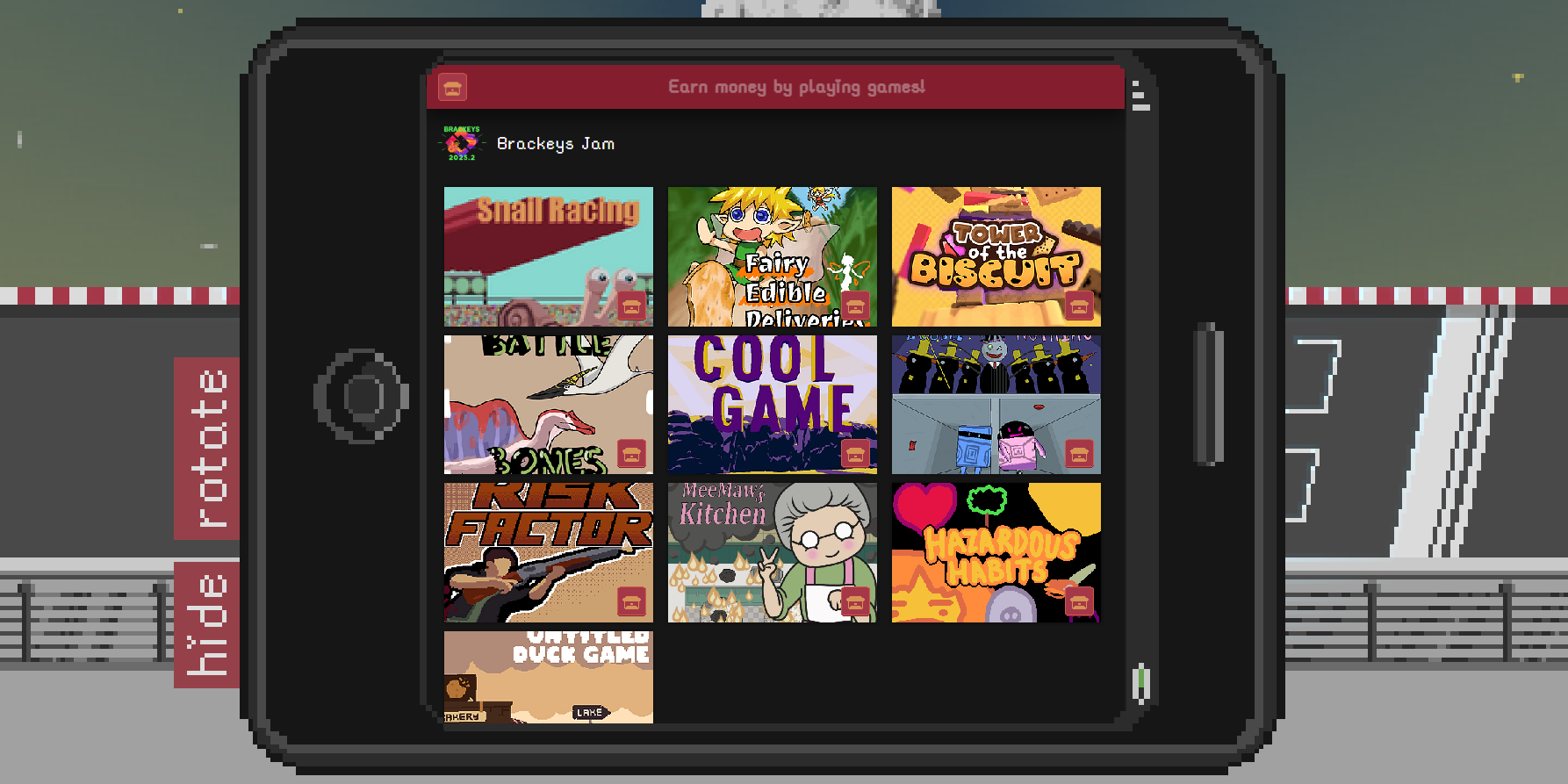 Awesome game page and game. The loop is quite satisfying to play through and race track background is a great visual gag chef kiss. The embedded games on the phone is straight insane haha
