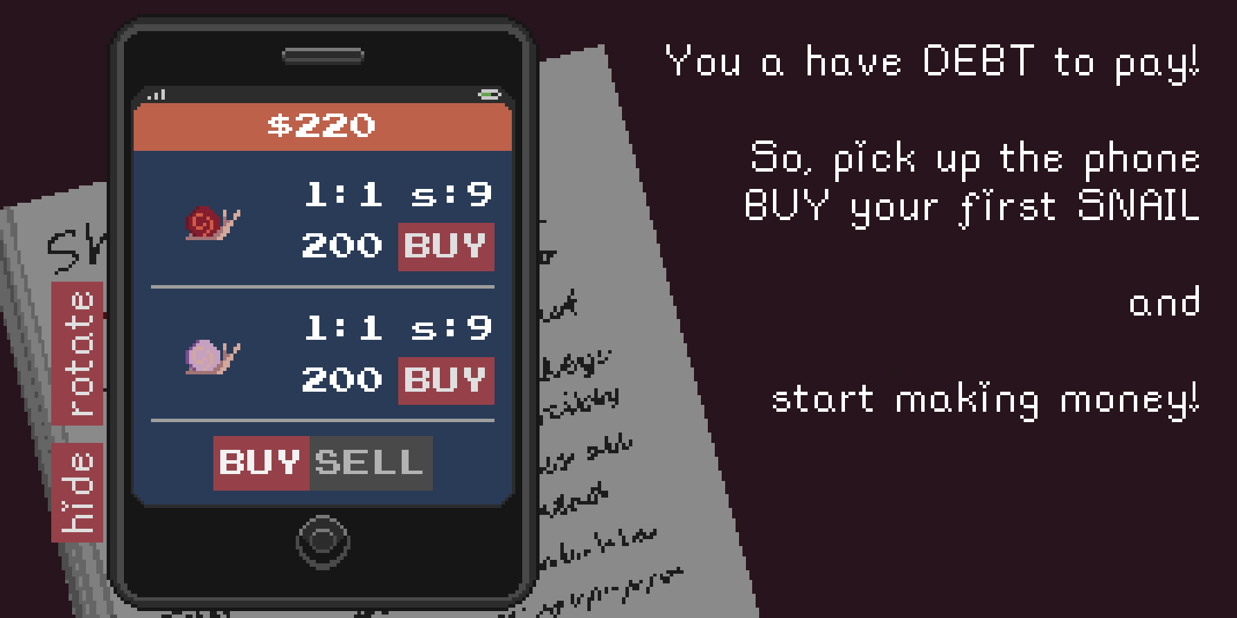 Shop - Buy/sell snails (you can scroll it with mouse wheel)